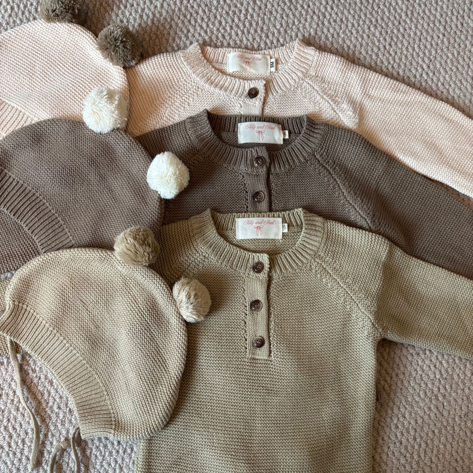 Includes matching pompom beanie